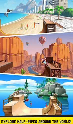 2、环游世界!环游世界,选择您最喜欢的地点去滑板!从迈阿密海滩到贝加尔湖,您可以享受各种各样的坡道!