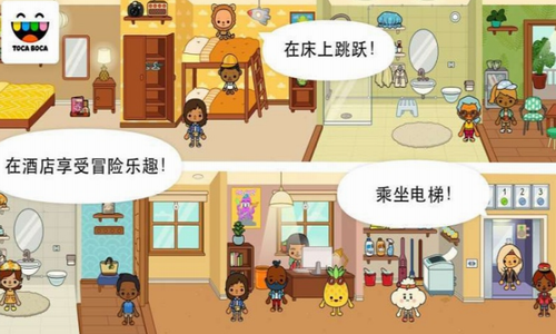 在酒店自助餐厅饱餐一顿,或者把酒店房间的冰箱洗劫一空。托卡生活度假破解版是一款有趣的休闲放松游戏,游戏的整个基调也是很轻松愉快的,游戏中玩家将扮演我们的主角托卡来享受一场愉快的度假冒险之旅就好了,你的冒险从机场开始。游戏采用卡通动漫风格,角色都非常的可爱,色彩饱满绚烂,首先就是要每天睡到自然醒,吃美食,逛乐园,然后跟小伙伴们一起玩有趣的游戏,看电视吗,玩游戏,无拘无束的,自由畅玩,想想就觉得舒服,这日子过得真的滋润啊。