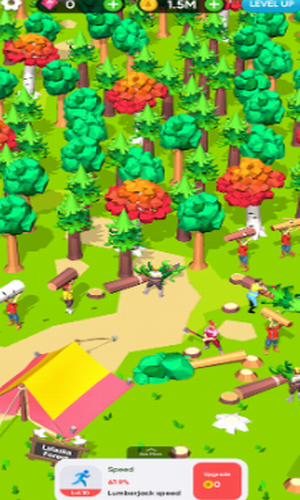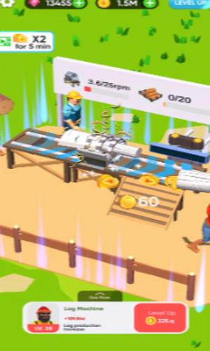 招募工人们前来伐木,提高他们的等级和技能。空闲木材厂破解版是一款比较简单轻松的模拟经营游戏,首先整体的游戏画风很不错,然后大家可以在这里很随意的进行娱乐玩耍,超高清的游戏画质,能够给与到大家的视觉感受也是前所未有的哦,继续这场趣味的养成道路;经营工厂也是不容易的,还要那么多的工人需要养活,提高科技力量获得更大的竞争力,才能在接下来的浪潮中做大做强,成为一个真正的木材大亨。