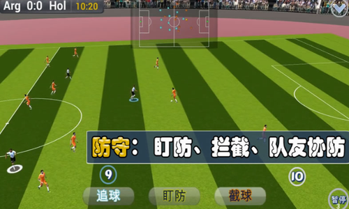 3、你可以随时接管AI,对本队队员进行完全的操控,如带球、传球、射门、铲球,或任意队友跑位。