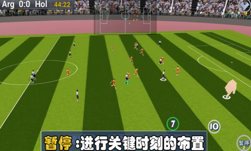 4、你也可以像教练一样设定阵型、战术并实时生效;还可暂停比赛,进行战术板式的即时布置。