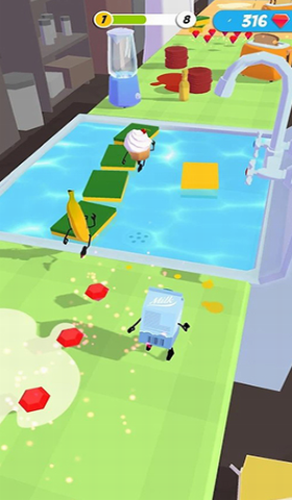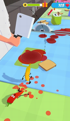 1、游戏中,玩家需要控制一个香肠卡通人,或者香蕉,橘子,胡萝卜等食物。