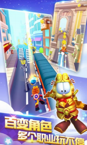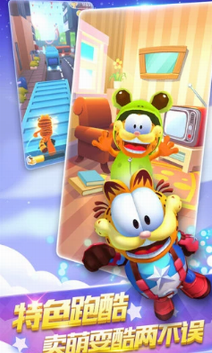 这款加菲猫主题游戏结合跑酷+养成元素,玩法轻松休闲,玩家可以通过跑酷收集金币,为加菲猫购买时装和道具,以及建设美丽的家园!