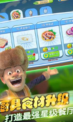 一款官方授权的餐厅经营手游,创造美味料理的同时,与熊大熊二一起创造美食,经营餐厅,提升餐厅的星级,参加食神大赛,锻炼烹饪技能。