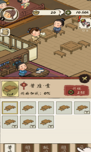 开始你的创富之路,完成各种各样的小目标。打尖还是住店破解版即打尖还是住店游戏的无限元宝无限铜钱破解版,打尖还是住店破解版这款充满了古代文化气息的酒店经营模拟游戏,将会让玩家扮演一个酒店的老板,为了能够招纳更多的顾客前来消费,可以不断地发展自己的酒店,增加更多的菜品,美化酒店的装饰,扩张酒店的规模,让酒店能够更好更快地发展,玩家在游戏中扮演一位客栈老板,每天有不同的客人进店来进行吃饭或者住宿,老板需要合理的安排他们,赚到钱后要对店铺进行升级,越做越大,防止对手超过,感兴趣的小伙伴可以下载试玩!