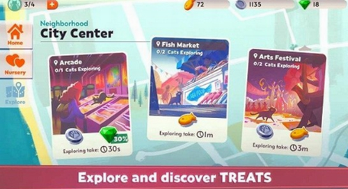 5、派遣猫咪探索不同区域,带回宝藏。
