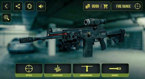 3、玩家可以根据枪械的型号以及类型选择配件,瞄准镜、子弹夹,枪口补偿器等。