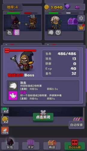 2、组成英雄小队后,您可以探索地牢,获得经验和金币来升级您的英雄。