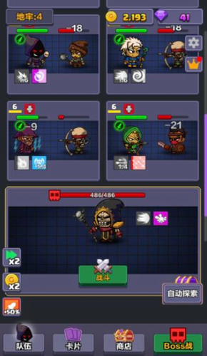 1、玩家可以不断解锁各种不同的英雄,带领他们进入地下城。