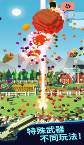 2、可以任意的使用各式各样的武器来射爆各种水果,玩法很是上头。