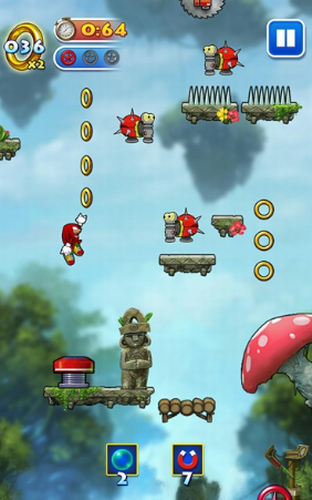 游戏分为故事模式和街机模式,玩家可以随意挑选进行游戏。在故事模式中,挑战丰富多彩的48次行动,追赶邪恶的蛋头博士吧!在区域最后的行动中将与蛋头博士一决胜负!通过跳跃狠狠地教训蛋头博士吧!街机模式中可以挑战无限区域!保持零失误最高可以跳到哪里!?向最顶端进发吧。
