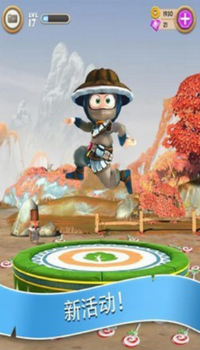 跳弹床和打沙袋都是获得金币和经验的好途径,拖动他们让小忍者能跳到或打到就OK了。结束后会掉出奖励的袋子,这时候小忍者会把手举起来,意思就是:give me five!和他击掌后的可爱模样真是惹人怜爱。