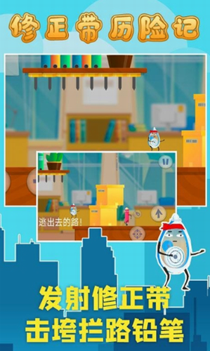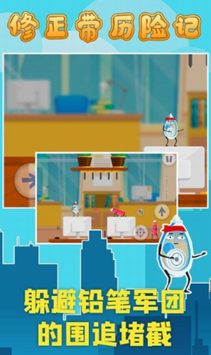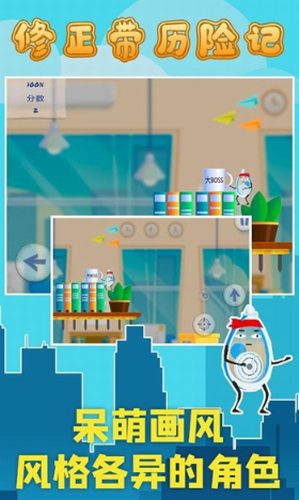 1、操作修正带君逃离无聊的办公室,跳过一个个办公桌来逃离这里。