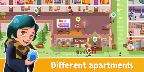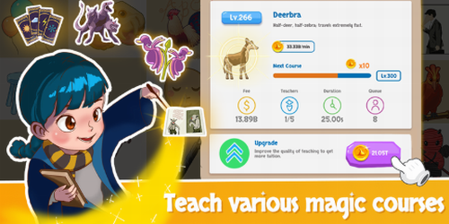4.广告招募新生,扩建宿舍,解锁新的课程来扩建你的魔法学校。