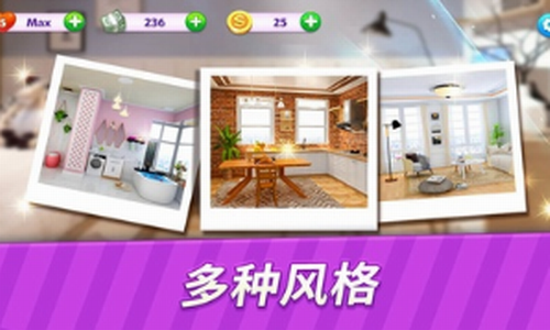 1、极简的游戏玩法,华丽的布置装饰,去装修属于你的房屋,参加各种各样的挑战;