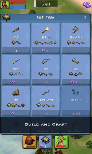 1、利用你的知识和力量制作武器狩猎、缝衣服,尝试在荒岛活下去。