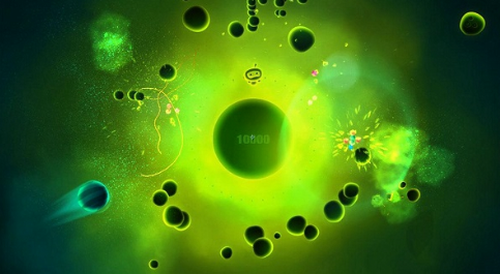 3、看到你的星球周围一圈彩色小圆球吗?那个可能是子弹,可能是加血,吃了那个后敌人会暂时退缩。