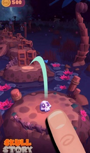 2、我们需要瞄准好落脚点然后松开手指,这个时候骷髅头就会以一个抛物线运动出去了。