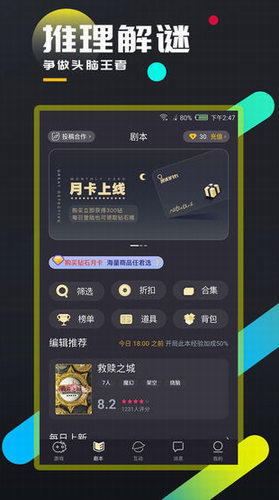 1.各种侦探,为情节推理的恋人寻找朋友;比狼人杀人更容易和有趣。轻松交友。