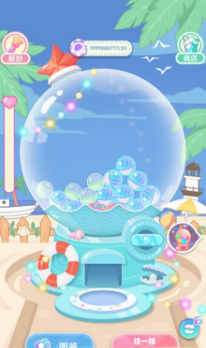 1、一款画面清新Q萌的休闲手游,游戏加入了扭蛋元素和装扮元素。