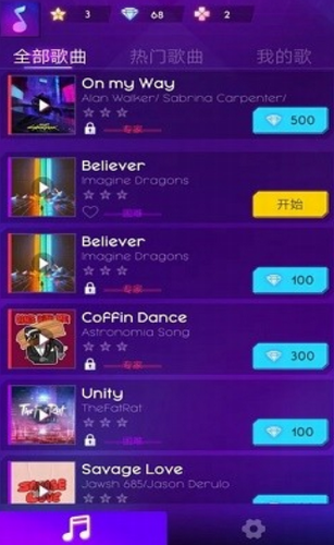 2.玩家不断挑战,突破壁垒。可以得到很多金币,可以解锁新歌,带给你全新的体验。