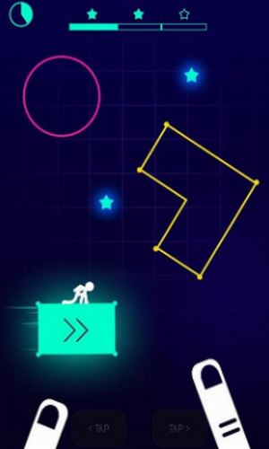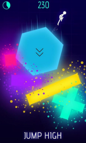 2、游戏规则很简单,只要火柴人成功的着陆到一个方块上面,这个方块就会被点亮,然后继续想下一款跳跃;