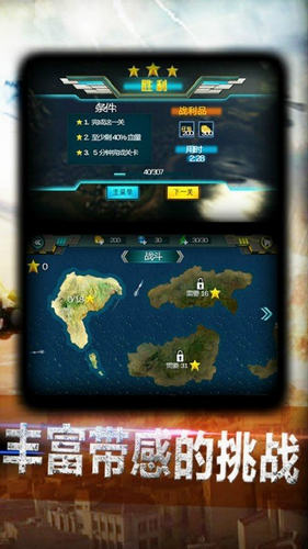 3、驾驶多种多样的飞机,自由的选择机型导弹,用最强的炮火武装自己。