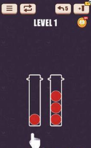 1、轻击任何一个试管,将位于任何试管顶部的球移动到另一个试管中。