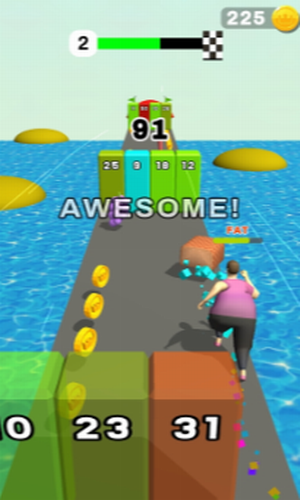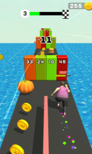 2、努力向前奔跑,肥胖并不会影响你的速度,去完成各关卡的挑战吧!