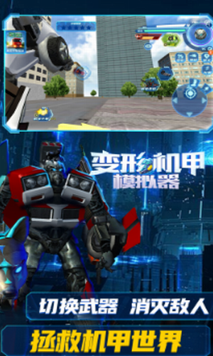 选择自己喜欢的机甲战士上场战斗,秒杀所有敌人变得更加强大吧!变形机甲模拟器中文版是一款模拟题材的机甲类游戏,游戏采用玩家将操作机器人在不同的场景地图中进行战斗,操作自己的机器人打败其他的敌人,赢得胜利,保护城市的安全,非常的刺激好玩,在这款游戏内将会给玩家们展示出不同形象,不同性能的各个机器战士喲,从而将可以给玩家们散发出不同的战斗形态,帮助玩家们快速击败出现在地球当中的各个外来侵略者啦。