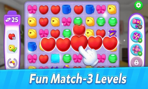 2、玩家通过消除的方式来解锁不同的饰品,这些装饰物多你的房间也会更精致;