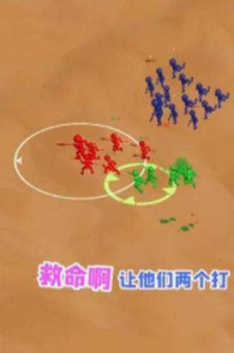 2、操控小人无限闯关,各种颜色小人操控,不断壮大队伍,消灭来袭的对手。