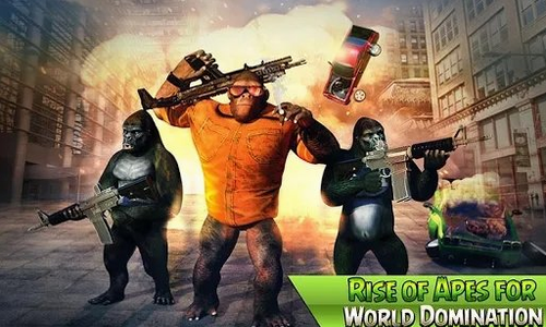 在这座新代城市中大肆破坏,完成游戏中的各项任务。疯狂的大猩猩是一款主打大猩猩越狱破坏玩法的手机游戏。猩球大战的背景题材,在这里你需要帮助有了智慧的大猩猩们逃脱监狱让他们获得自由,丰富的玩法内容加上趣味的题材给你带来全新的体验,你所扮演的猩猩拿着枪能横扫奔你而来的所以敌人。不管是大卡车,飞机还是恐龙,你都能让它们吃子弹。不必担心弹药问题,这是无限的。你所需做的就是享受这份疯狂,把所有的敌人击倒。