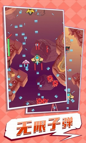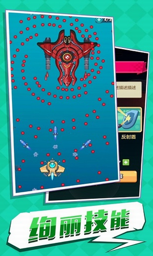 1.游戏中玩家操作的飞船需要击败各种各样的敌人,飞船有非常炫酷的技能,且飞船拥有无限的子弹。