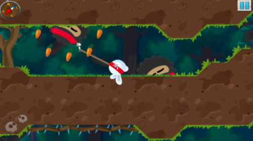 兔子武士安卓版是一款融入丛林探险元素的动作冒险向游戏,玩家在游戏中即将化身一只斗志满满的弹力兔,并且你可以通过不断地在关卡内收集造型可爱的胡萝卜,以此来获取数值不同的闯关分数,进而换取奖赏不一的活动奖励。同时你也需要通过躲避位置不同的荆棘机关来不停地突破自我的闯关记录。在这里你还可以使用角色自带的弹力技能,感兴趣的小伙伴快来下载体验一番吧!