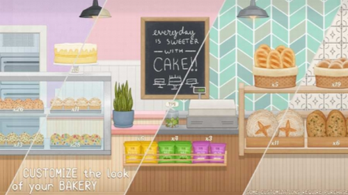 1、简洁的游戏画风看起来十分干净,面包也都整齐的摆放在柜台里面,显得干净和美味慢慢。