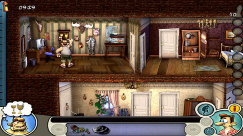 共要整六次主人行动模式:拿蜡烛(厨房)→生日蛋糕(厨房)→收信(大厅)→拿OK蹦(浴室)[需先用老鼠夹夹伯伯]。