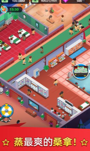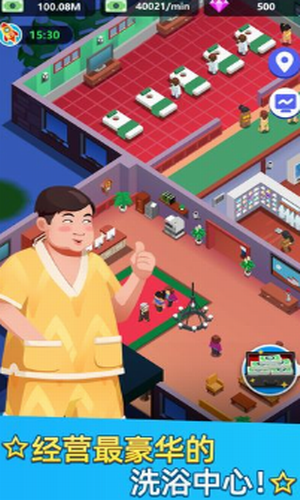 超级接地气,还原生活中泡澡搓澡画面。洗浴中心大亨破解版是一款模拟经营洗浴店的游戏,很多人其实是从来没见过洗浴店内部是啥样的,这次不仅能让你长长见识,还是让你直接当上洗浴店的老板去经营一家洗浴店,用完美的洗浴服务吸引更多人到你的店里来消费,通过重大决策,他们逐渐发展壮大,很多打法也非常丰富,不断提高自己的实力,提升自己,聘请专业的洗浴工,让更多的客户给你好评。