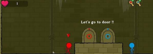 2、两个不同属性角色的闯关冒险游戏,蓝色的是冰人,红色的是火人,它们有着截然相反的属性。