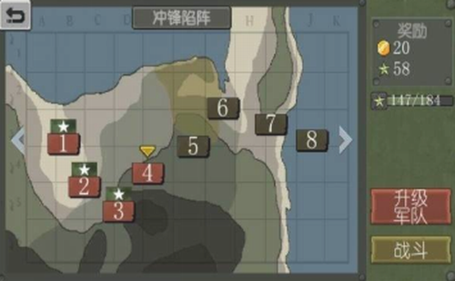 1、爬上关卡解锁新的军事单位,包含突击队员、军官、火焰喷射器、狙击手、炮兵、机枪手。