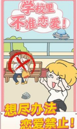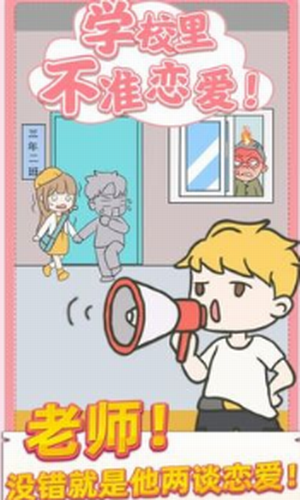 真是叔可忍,婶婶不可忍!今天,我一定要拆散你们。校园不准恋爱免费版是一款模拟的游戏,校园不准恋爱的画风整体是卡通的,玩家需要从最开始的时候就想尽各种各样的不同的办法让里面的谈恋爱的人分手。在这里要面对众多的情侣们,看见任何的任何都要想办法拆散他们。在校园中四处的游荡,将那些天天秀恩爱的人群统统打击一段,在这里体验轻松畅快的剧情内容。玩家也是沉溺其中的美好,当然此时坏人的你就出现了,你必须棒打鸳鸯哦,快来下载校园不准恋爱吧!