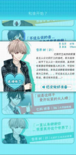 4、通过不断的和这6位男生对话,进行回复。根据回复内容可以达到不同的结局。