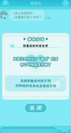 3、你要和一个帅哥在游戏内置的聊天系统里聊天,你不同的回复会影响他的好感度以及后面的对话走向。