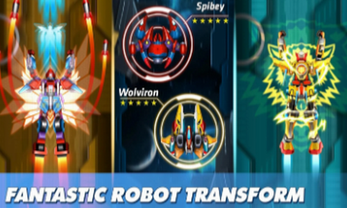 2、赚取金币升级或购买新战斗机,通过进化卡将战斗机变换为机器人。