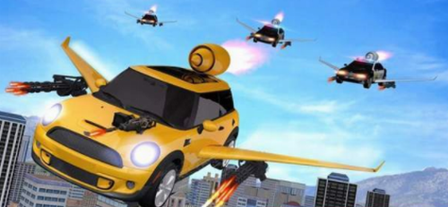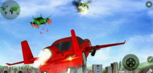 1、一款模拟汽车飞行驾驶射击题材的炫酷手游。