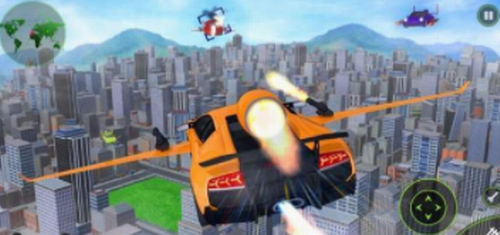 1、是一款驾驶起来在天空射击的游戏,未来的科幻中汽车是可以在填上飞的。