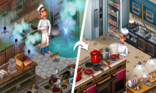 击败快速烹饪游戏开启新的篇章,您将能够翻修和装饰餐厅游戏中的所有房间,以及罗杰厨师的激动人心的故事和烹饪的狂热,他努力工作,以获得自己的建筑,并在一个美丽的餐厅改造它。