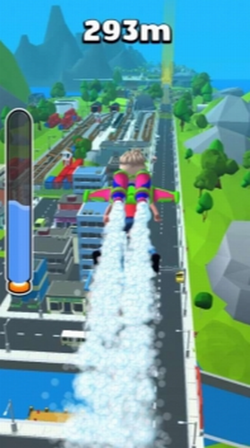 3、玩家在游戏里面背着个火箭背包在空中可以自由的飞翔,就是要注意避障碍物,成功到达终点即可过关。