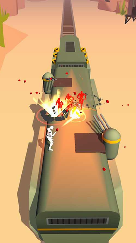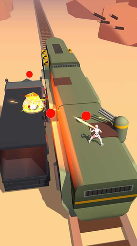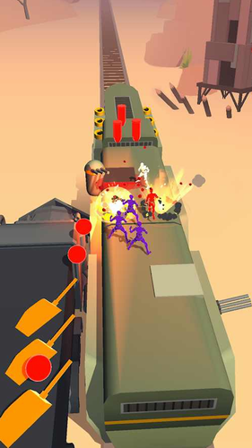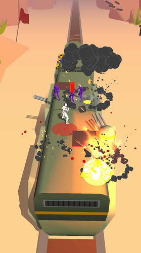 1、起武器,跳上火车顶。与所有想要抢劫您的火车并尽可能远地进入敌对领土的新来的敌人作战。