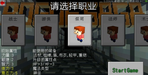 2、选择战士、游侠、祭祀、法师等职业直接进入游戏。